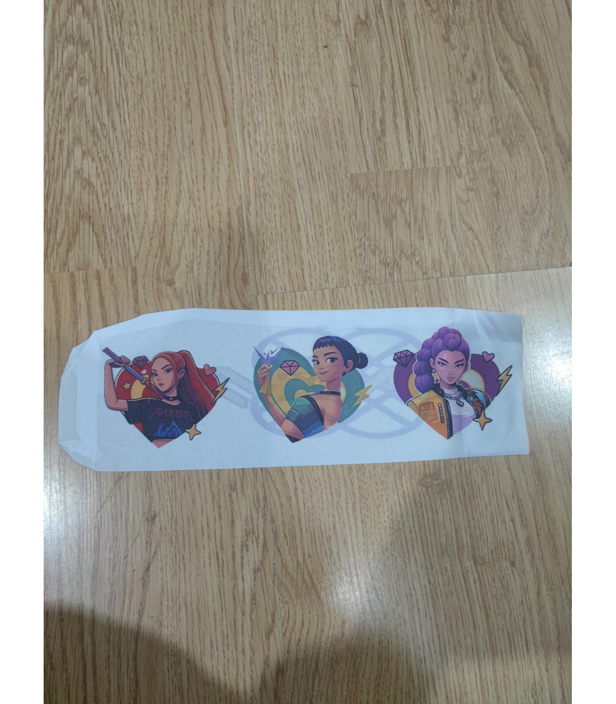 Diseño con ilustraciones del trío HUNTR/X: Rumi, Mira y Zoey (de la película K-Pop Demon Hunters)